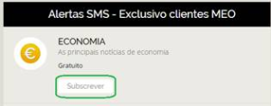 Nos Alertas SMS, um exclusivo para clientes MEO, são disponibilizados os seguintes temas: